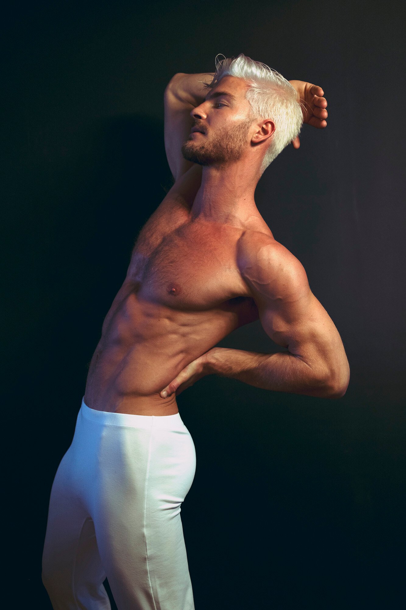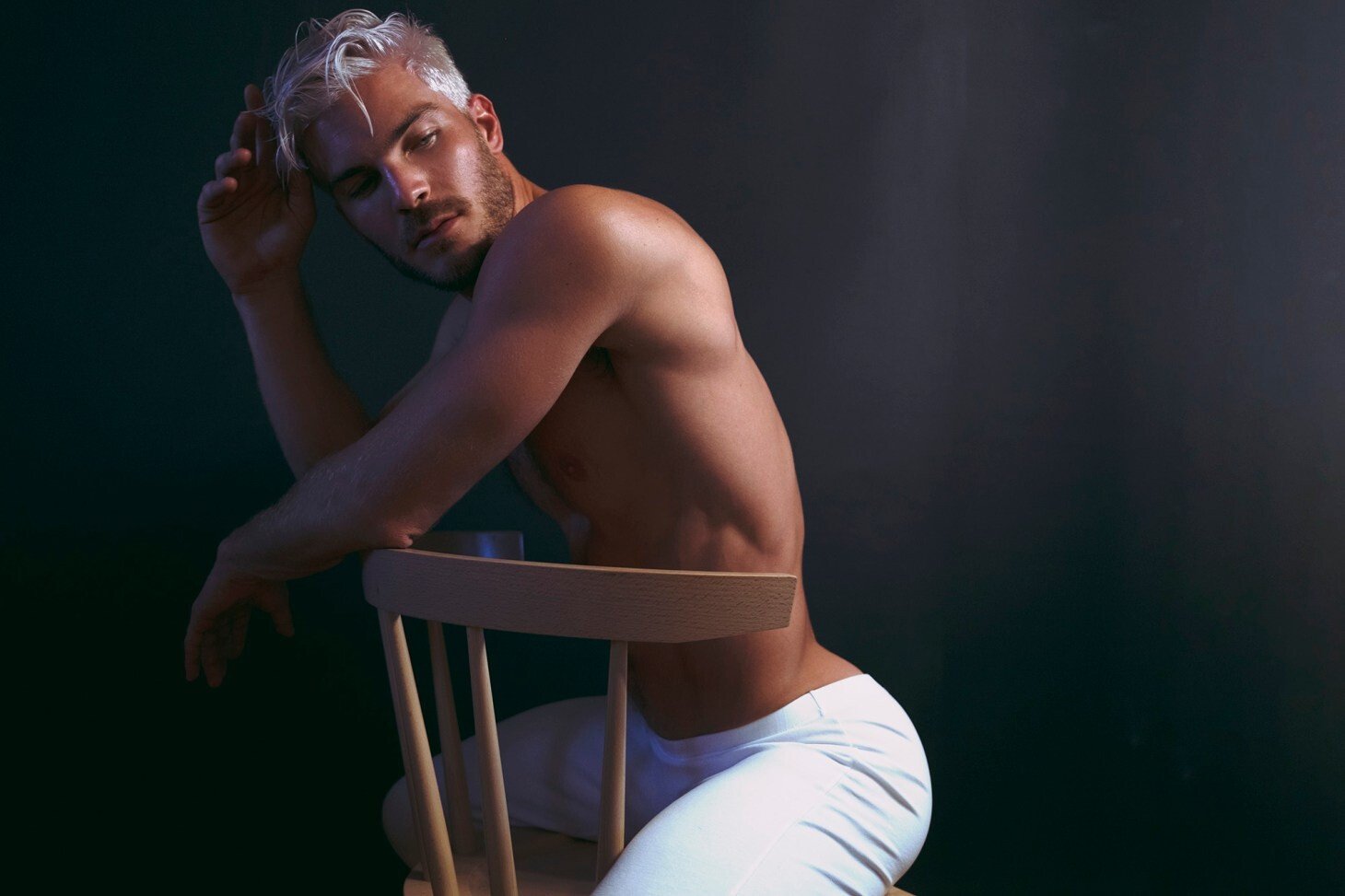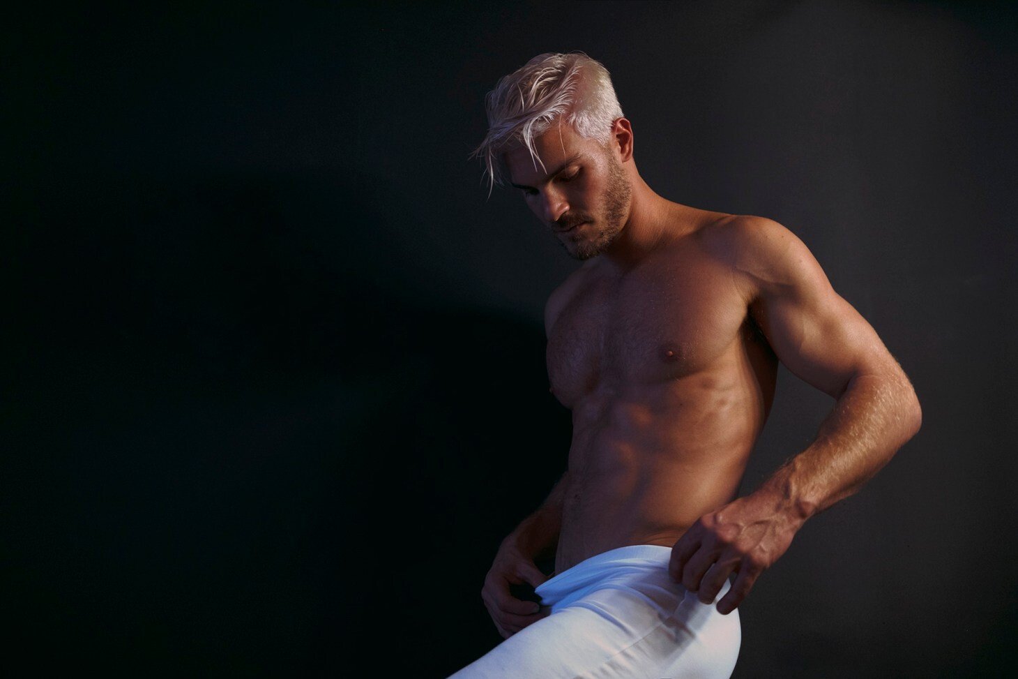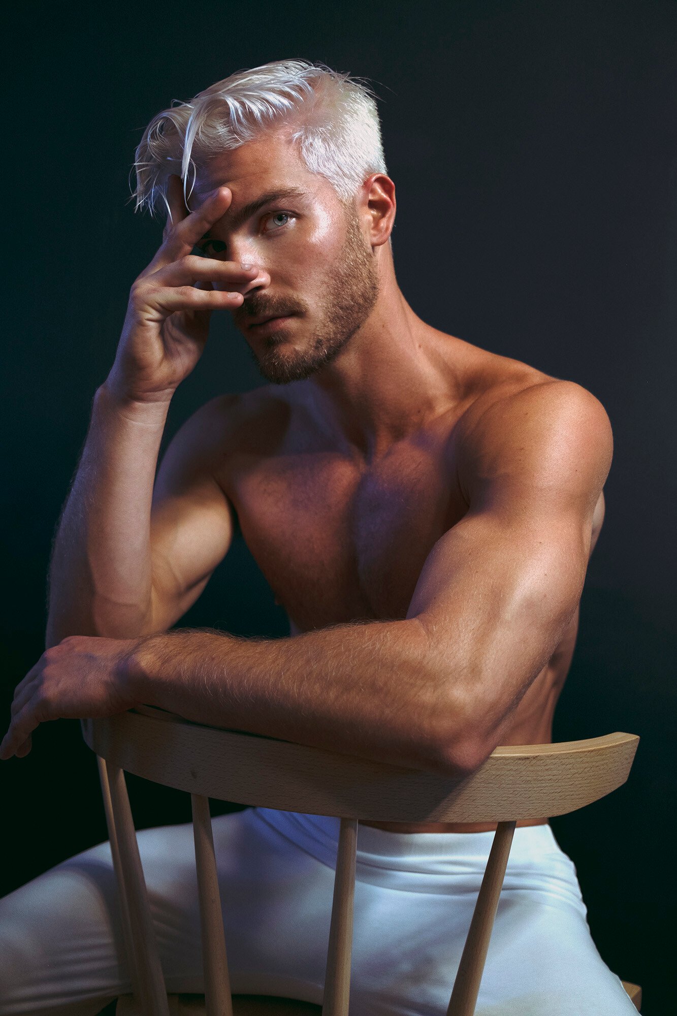 Il est tellement beau et il a un corps incroyable. J’avoue que j’étais un peu incertain des cheveux platine au début de ce tournage d’Eden Yerushalmy mais à la fin, je me demandais sérieusement si je pouvais réussir ce look.