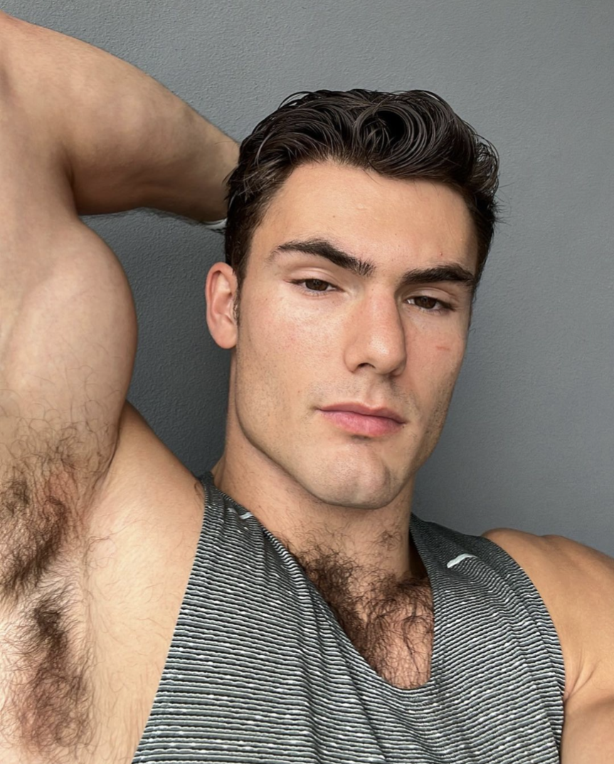 Levi Conely est là pour nous faire baver. Non seulement il a le corps dessiné, bronzé et poilu d’un homme sexy de la trentaine, mais il n’a pourtant que 25 ans.