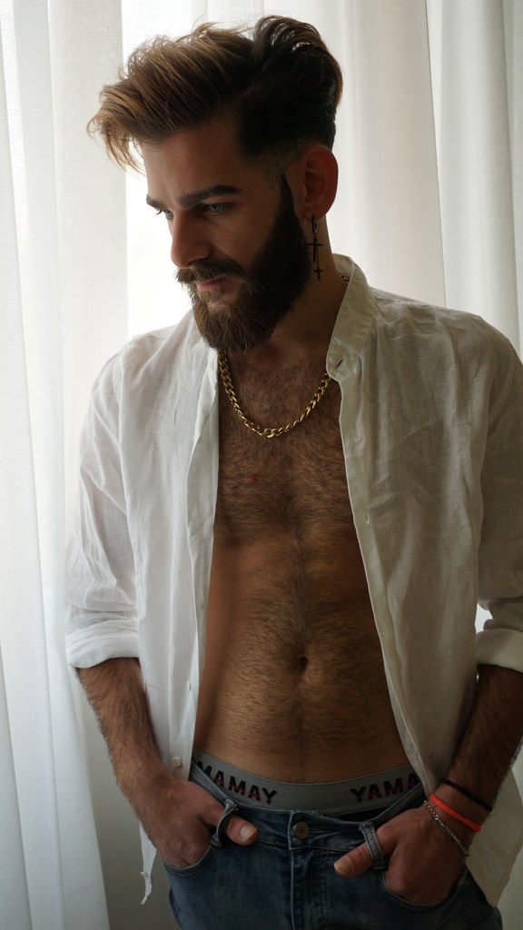 S. Sortino est un modèle amateur qui nous vient de Milan en Italien. Il est coiffeur et aime l’art. Il est du signe Lion, ce qui a inspiré cette session photo par l’artiste A. Bellani.